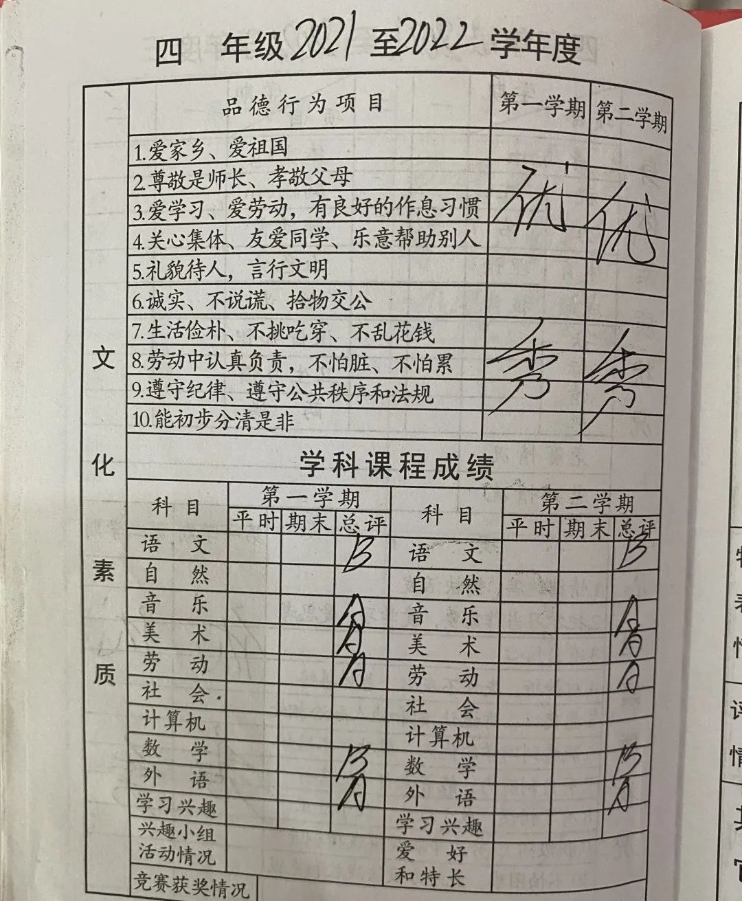 滑动查看淼淼的成绩报告单