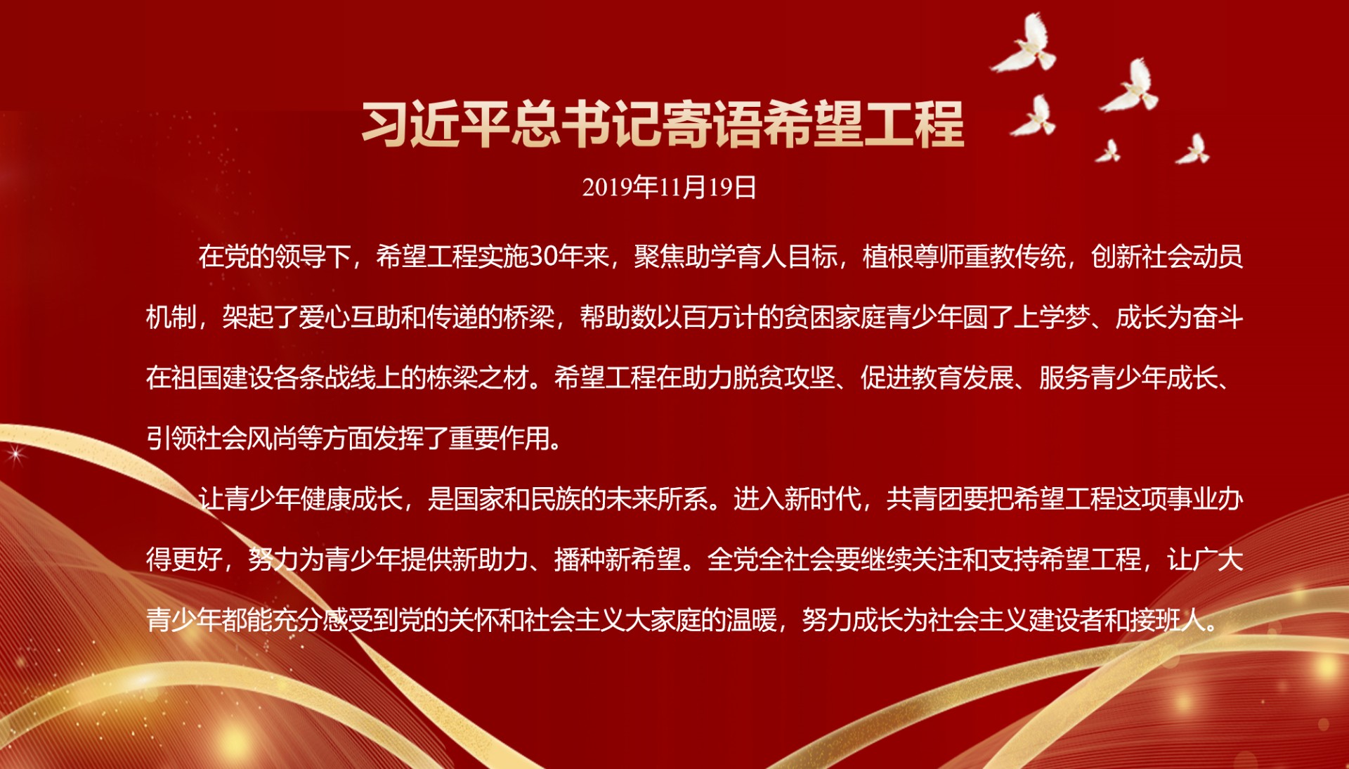 > 习近平总书记寄语希望工程