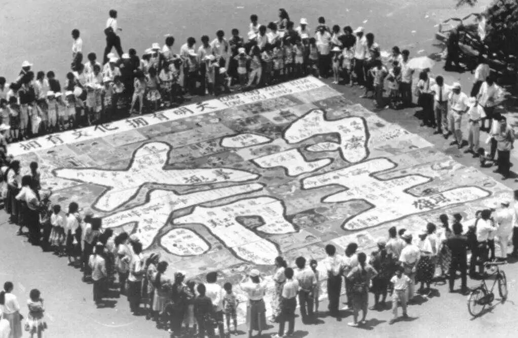 1992年6月1日,湖南省长沙市百名少年儿童集体创作的“希望工程”巨幅书画作品。新华社记者 陈小鹰 摄
