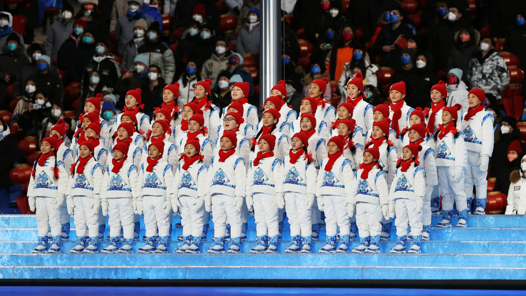 马兰花合唱团在北京冬奥会开幕式上表演。